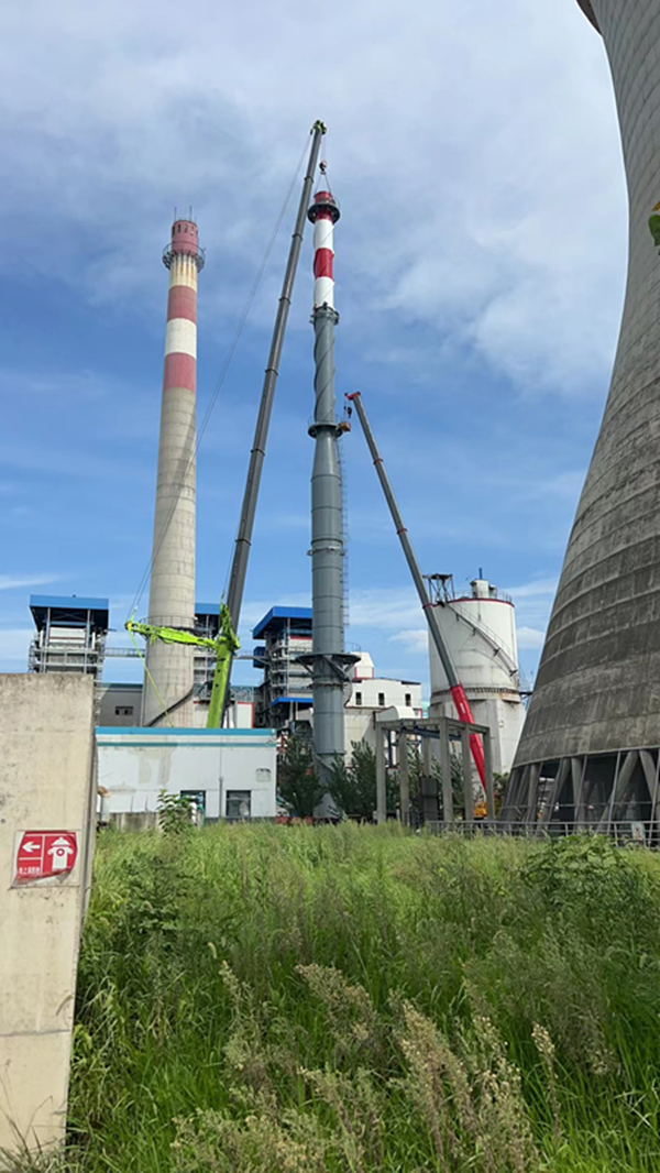 六安光大環保新建鋼煙囪吊裝中
