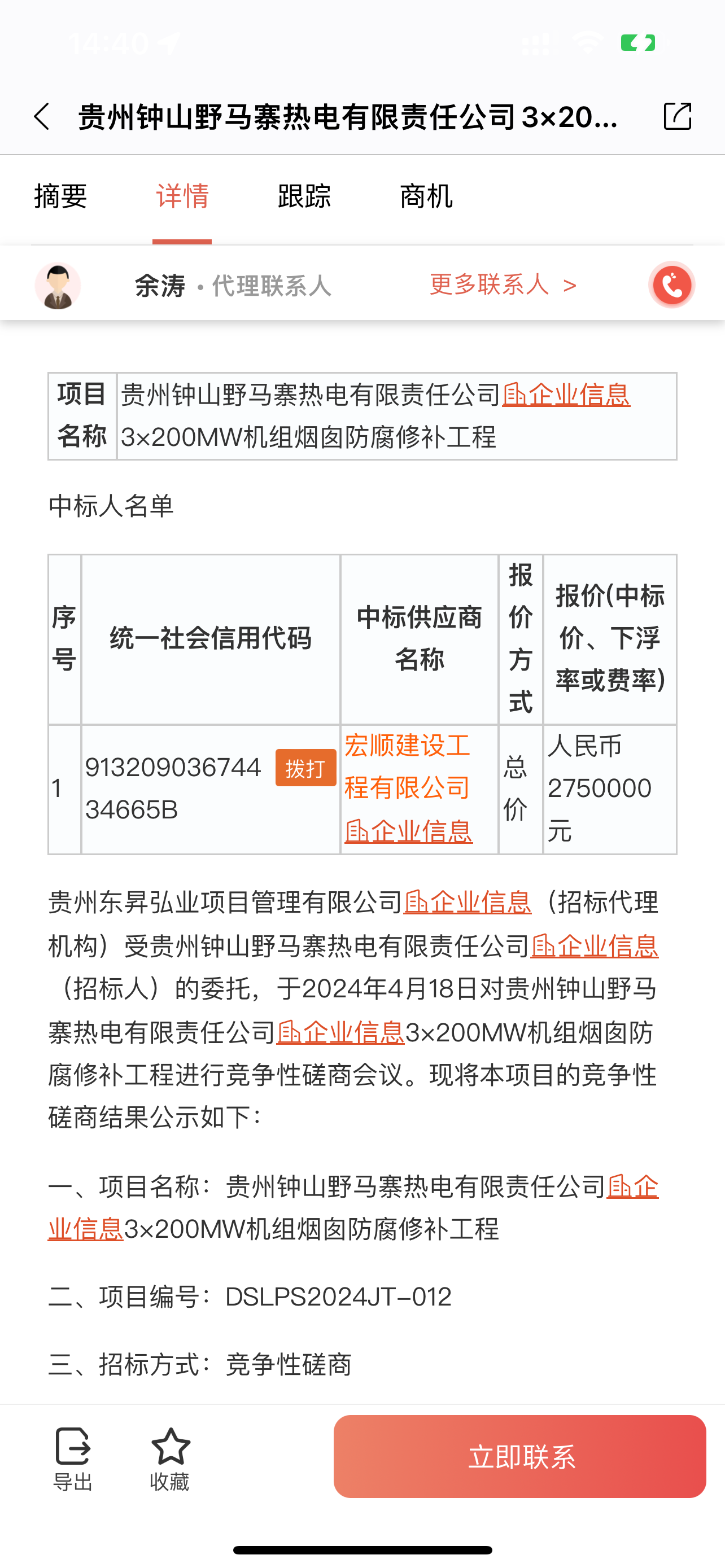 熱烈祝賀我公司中標貴州鐘山野馬寨熱電公司煙囪防腐修補工程項目